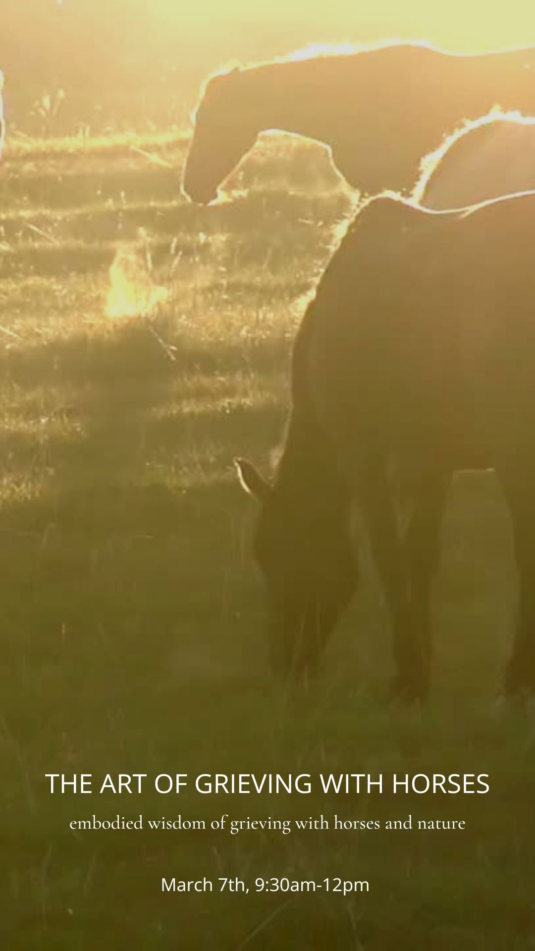 Grief is a normal, natural, complex experience to loss of any kind. Together, we will explore our relationship to grief as we work with the wisdom of the horses, the wisdom of nature, and the wisdom of the body.